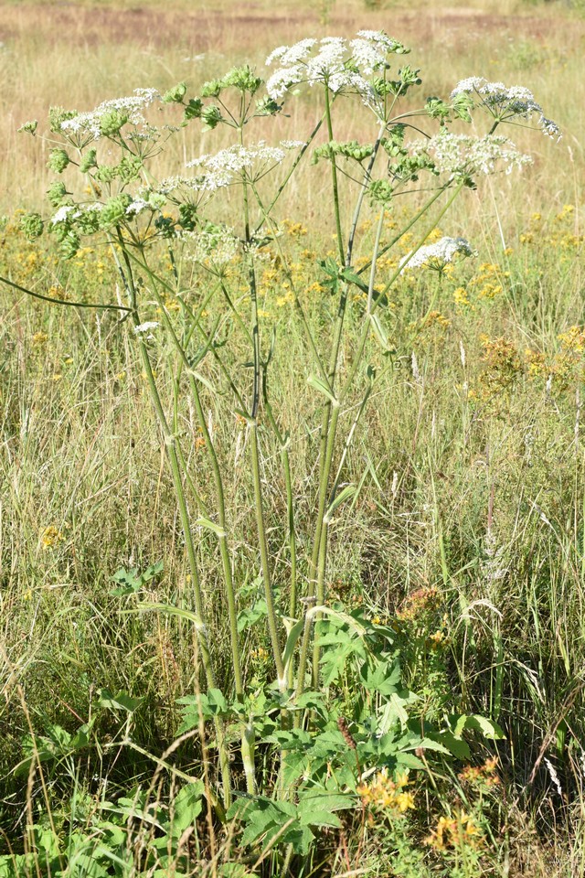Wenden wir uns, nachdem wir den Wiesen-Bärenklau („Speckkraut“) vorgestellt haben, gleich einem weiteren stattlichen Doldenblütler zu, der Wald-Engelwurz. Im Pfälzerwald stehen die beiden Arten auf Nass- und Feuchtwiesen und an Grabenrändern manchmal nebeneinander. Auch die Wald-Engelwurz kann bis 1,50 m groß werden und ihre ebenso imposanten Dolden ähneln denen des Wiesen-Bärenklaus. Beim Vergleich der Grund- und unteren Stängelblätter können wir jedoch einen interessanten Unterschied feststellen: Zunächst sehen wir auf der beigefügten Zeichnung, dass beide Arten gefiederte Blätter tragen. Die Unterteilung eines Blattes in sogenannte Fiederblättchen ist bei der Wald-Engelwurz vollkommen, d.h. wir sehen ein Blatt, das sich zusammensetzt aus hier 15 gleichmäßig angeordneten, eiförmigen Fiederblättchen, deren Blattränder relativ regelmäßig gesägt sind. Dagegen scheint die Ausdifferenzierung der Fiederblättchen beim Wiesen-Bärenklau unvollkommen, unvollständig, ungeordnet oder auch „noch im Werden“. Das Blatt der Wald-Engelwurz können wir als zweifach fiederteilig beschreiben. Das Blatt des Wiesen-Bärenklaus als einfach fiederteilig mit einer gewissen Tendenz zur Weiterentwicklung.